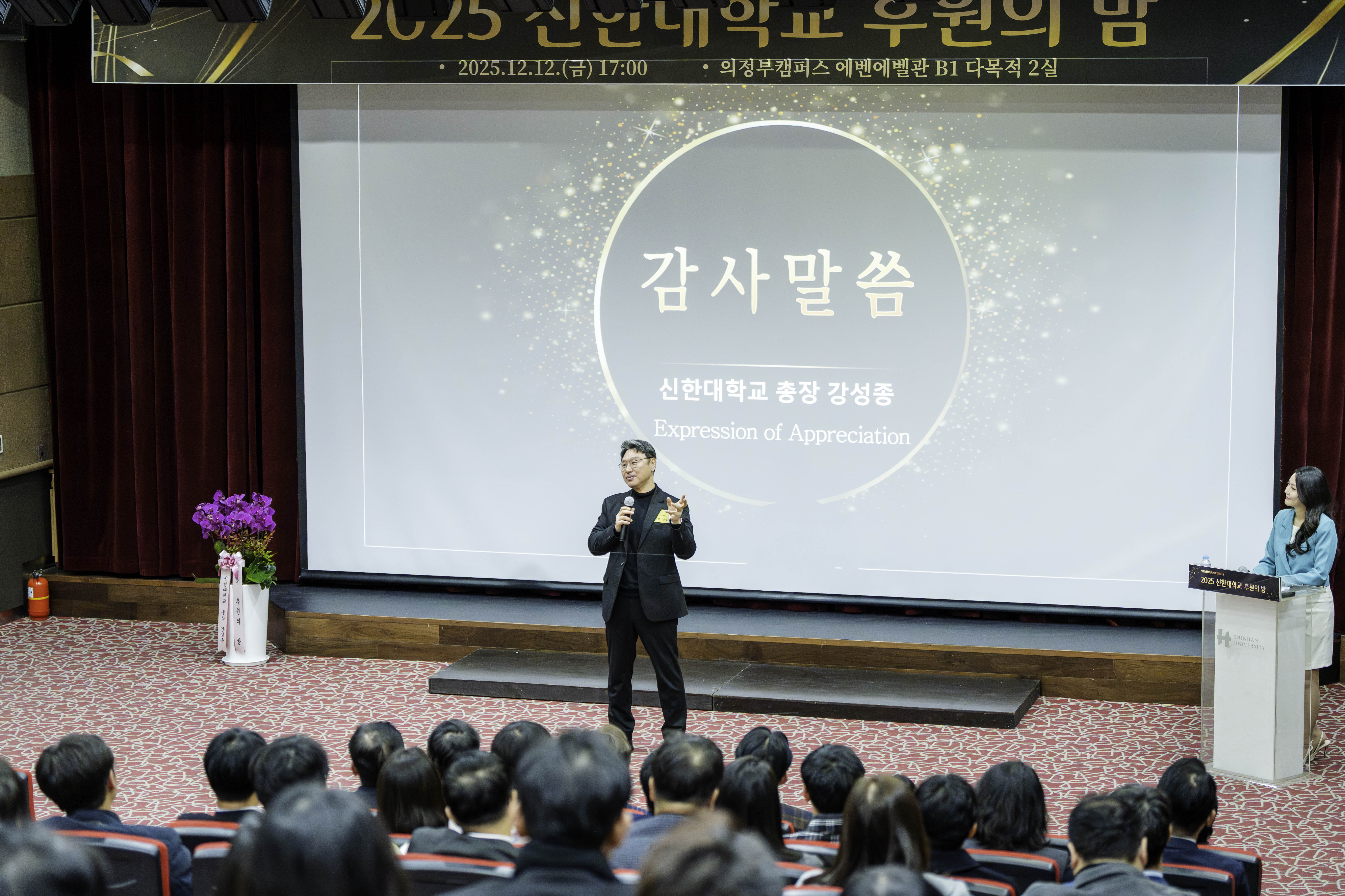신한대학교(총장 강성종)는 지난 12월 12일, 대학 발전에 기여한 기부자들에게 감사의 뜻을 전하고 대학의 미래 비전을 공유하기 위한 ‘2025 신한대학교 후원의 밤’ 행사를 개최했다.